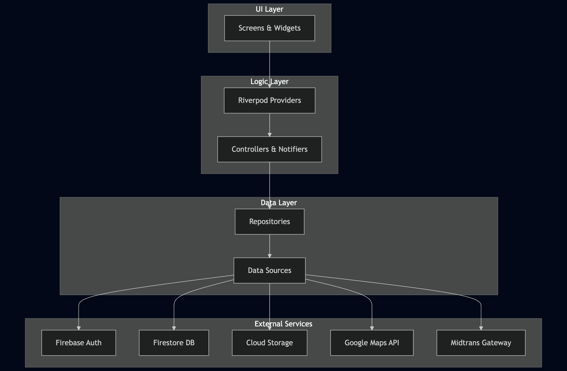 The Data Layer acts as a single source of truth, abstracting the complexity of Firebase Firestore and Google Maps API from the client-side logic.